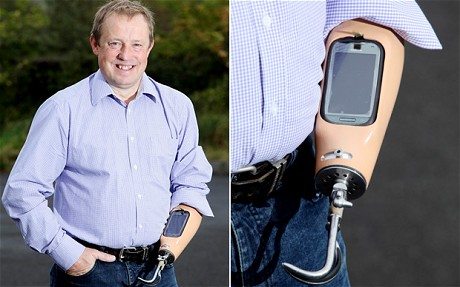 Well, I’m not exactly the one who can dock her phone on her prosthetic leg, but this week I found this link, to an article about a guy who is giving me grand ideas. He worked with the big dogs at Nokia, and his prosthetist, and ended up with an artificial arm that charges his phone. Even more than that, it docks his phone and he can text while it’s still attached to his body.