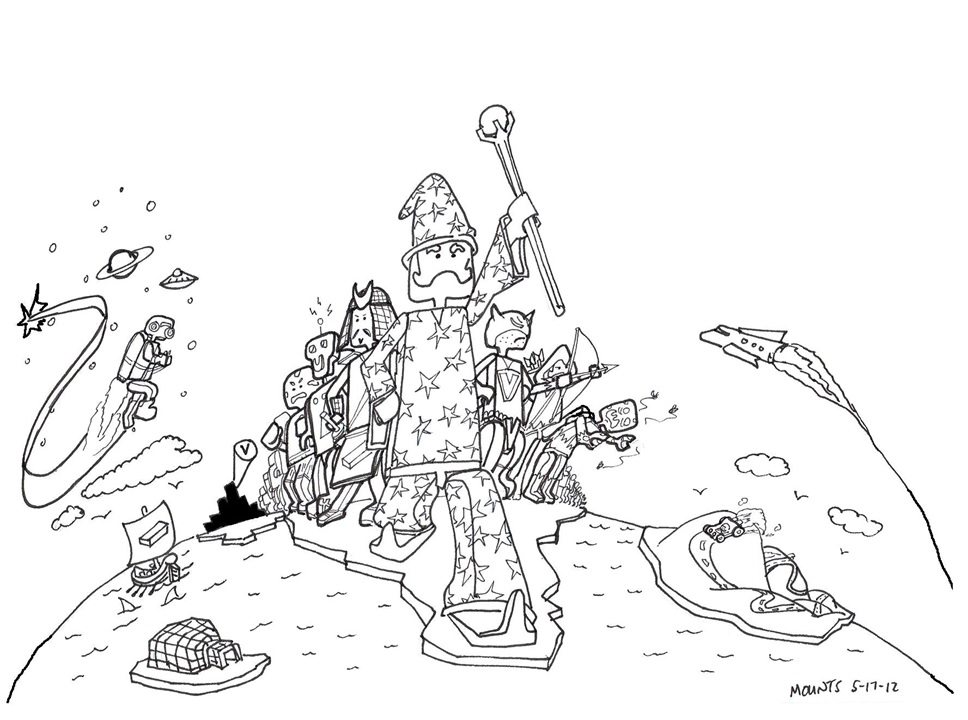 In a World Where Bricks Rule… is a set of icosahedron-based skirmish rules for brick minifigures. It’s bare-bones, rules-lite, and (hopefully) somewhat new-gamer-friendly. This version (0.5) is a quick intro to the derivative, yet fast and fun, game system. Also, J.R.’s artwork is great in it!