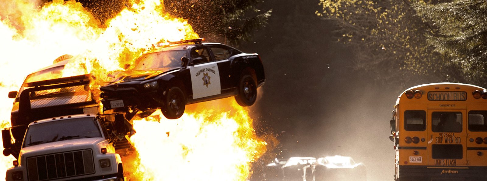 Aaron Paul plays Tobey Marshall, a mechanic and racer who recently inherited his late father’s high-performance auto shop. Marshall is big on the illegal street racing circuit, but he’s behind on his loan and may lose the business. A creepy rival, Dino Brewster (Dominic Cooper), hires him to complete restoration on a very valuable car, a job that will pay about $500,000; later, they get into an argument about their relative driving abilities, resulting in a race (involving the absurdly-expensive Koenigsegg Agera); Marshall’s buddy, Pete (who happens to also be the little brother of Brewster’s girlfriend, who happens to be Marshall’s ex; drama!), wants to join the race, and it happens that Brewster has a third Koenigsegg lying around, so they’re off. As expected, Pete dies in flames, Brewster frames Marshall for the accident and successfully hides his own involvement, and Marshall goes to prison for manslaughter. Two years later, Marshall is out of prison and out for revenge, which he will pursue via a high-stakes road race sponsored by “The Monarch,” a fabulously wealthy and mysterious retired racer (Michael Keaton) who rants and pontificates via an online call-in program dedicated to the wildly irresponsible races he puts on, which gives the producers an excuse to use a lot of video game imagery. Of course, Marshall has to get to the race first, which involves breaking parole and making a 45-hour cross-country drive in another borrowed multi-million dollar car, along with the hot blonde English girl (Imogen Poots) who tags along on behalf of her employer, the car’s owner. The cross-country drive attracts the attention of the police, state troopers, and a collection of thugs seeking the bounty Brewster has offered to anyone who can stop the pair. Cars blow up, crash into each other, and plow through a variety of structures.