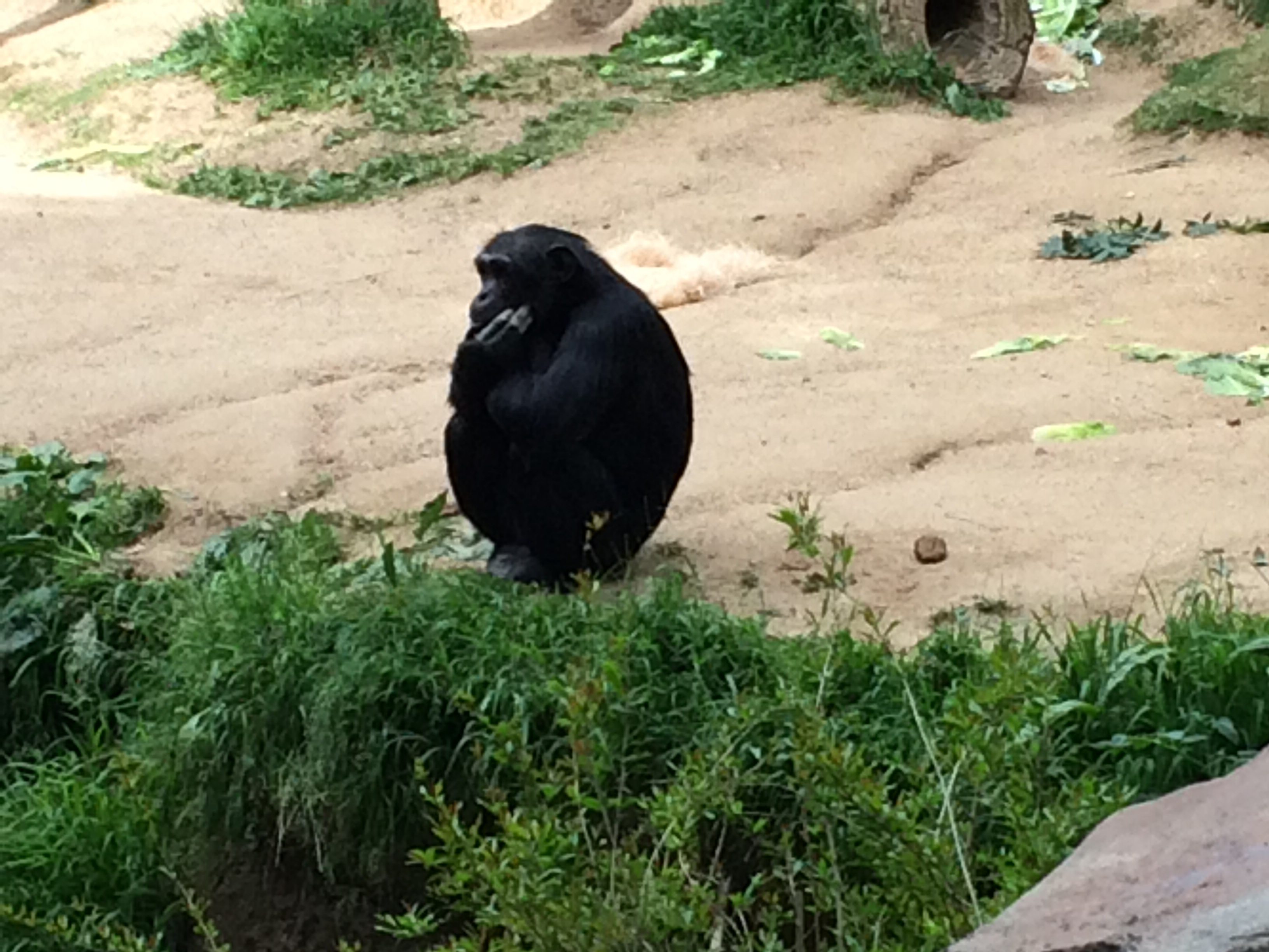 We got to see a bunch of zoo animals that were very cool, but not terribly exciting to me for the reasons I mentioned above. The giraffes were very pretty, the apes were fun – particularly the chimp who looked like he was posing for Rodin’s “The Thinker” – and Randa the 44-year-old rhino who survived cancer treatment in 2009. The other highlight for me was the carousel, which, like the one at the National Zoo, uses a wide variety of exotic species in place of the conventional horses. There is one chief difference between the L.A. one and the D.C. one: the D.C. one does not have a dung beetle with a giant ball of dung that you can sit in. I’m not certain which is better, honestly.