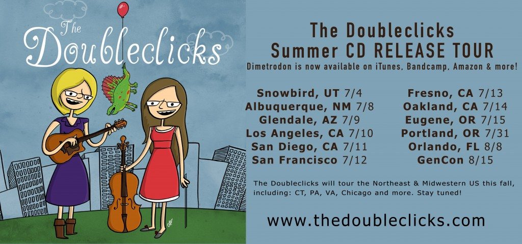 Visit the Doubleclicks website for the tour schedule. Dimetrodon is available from iTunes, Amazon, Bandcamp, CDBaby, and (of course) from The Doubleclicks on their tour.