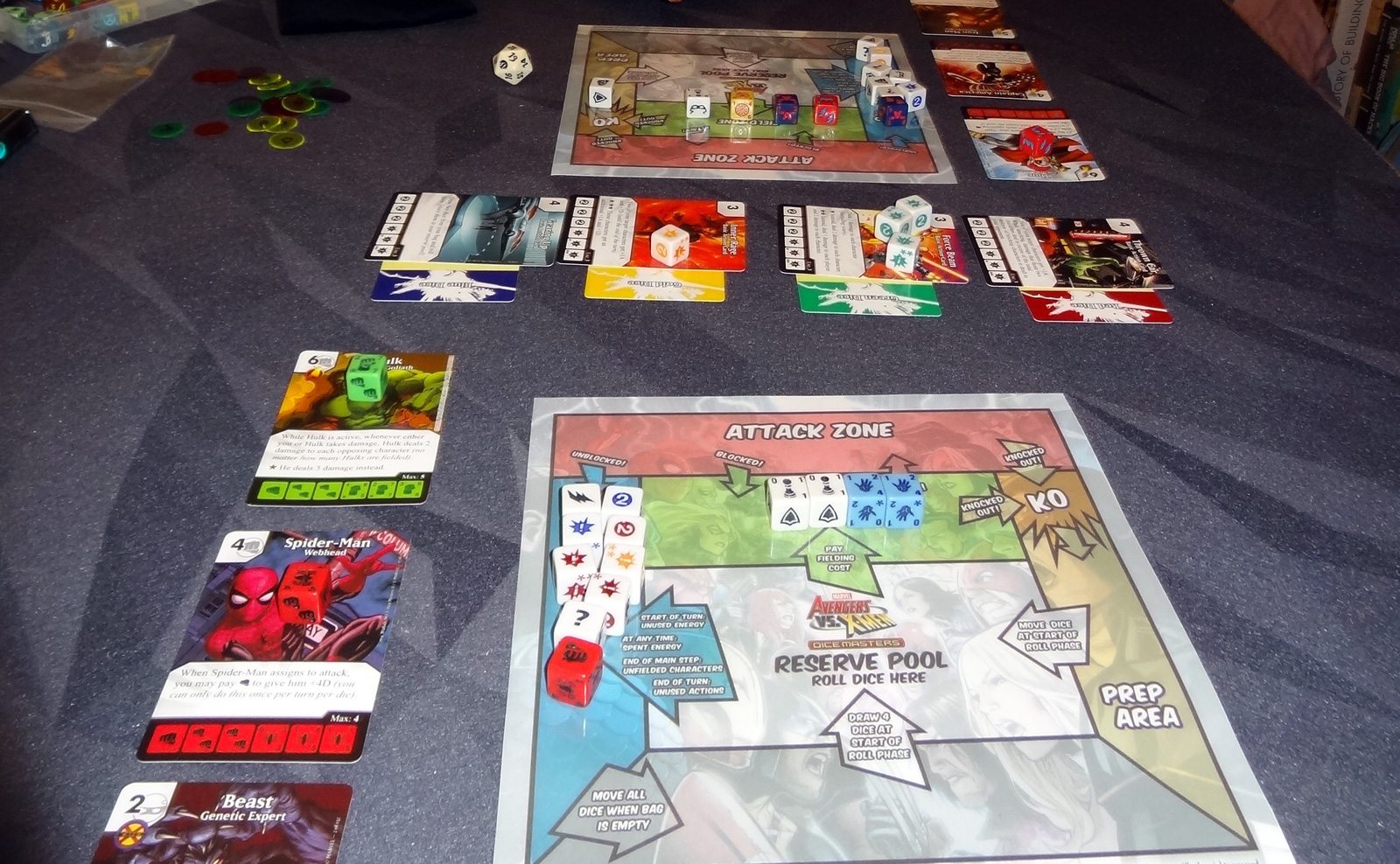 It’s a good surface for games with dice, cutting down the noise, and it works really well with cards, too. For tile-laying games, it doesn’t have the grip of the GripMats, but it’s certainly less slippery than the plain wooden table.