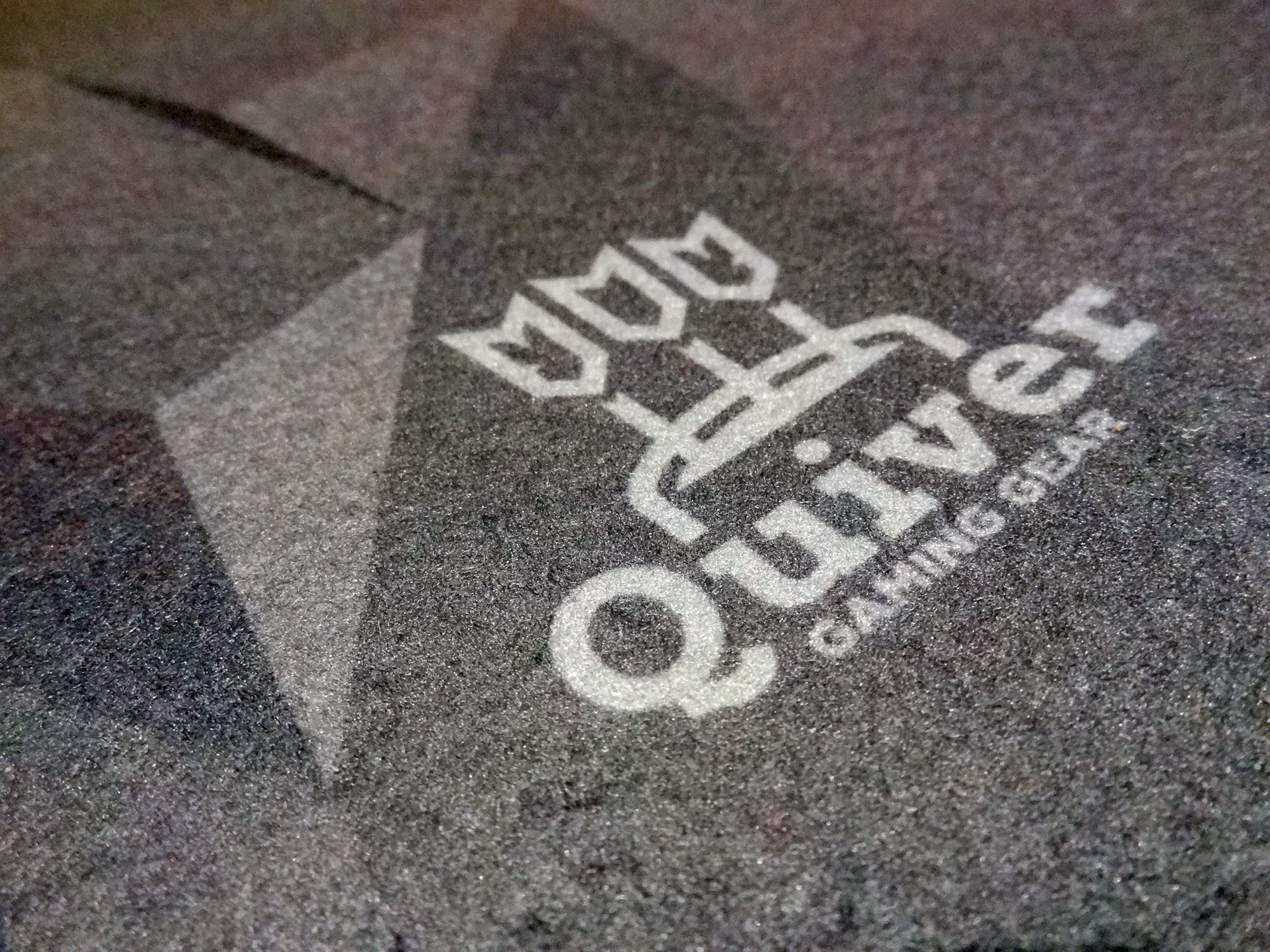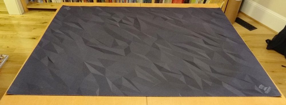 Quiver Gaming Gear is a new company that’s aiming to provide a more versatile gaming surface. It’s made of a polyester material with rubber backing, so it has that felted feel kind of like a fancy casino table and won’t slide around on your table. It’s not as sticky as the GripMat, so you can adjust its position on the table if needed, and the material is stiff enough so it won’t wrinkle up or snag while you’re moving it.
