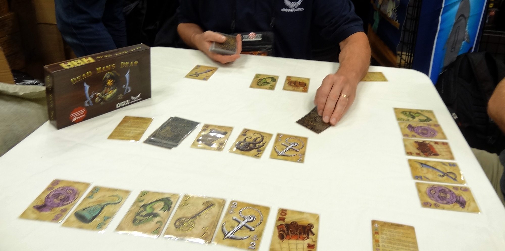 Some of you are going to back this on the title alone. Super Turbo bit Crawl FX: Alpha Xtreme is a spoof of classic console RPGs—you go explore a dungeon, fight monsters, get loot, level up, and eventually encounter the Boss Fight. There’s also a mini version, bitCrawl Pocket, which is a similar game but in a much more portable tuckbox. This is another one I didn’t play at the convention, but I liked the way the player boards have slots where the powers drop in (and additional locations for tokens when you level up). I’ve got a demo copy of the pocket game, so I’ll try to get a review up before the campaign ends. Check it out here.