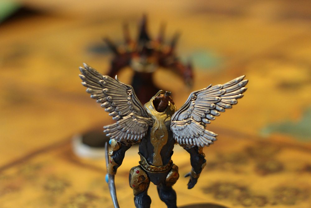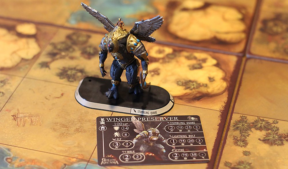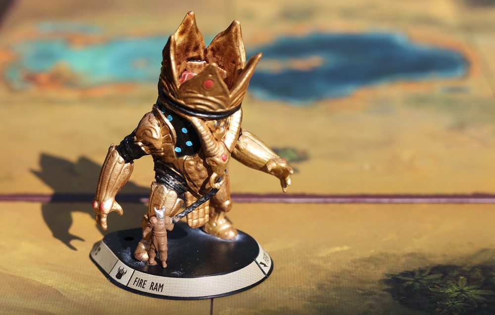 What’s more, and maybe it’s just spillover from playing the game on an iOS device, but with limited instructions, it would be nice if they were a little more intuitive and better organized and detailed. Finally, as you know, we are boardgame packaging elitists here at GeekDad and there are a couple of problems with this one. First, the instruction manual is too big for the box and ends up being rippled because of its size, no matter which way you put it in the box. Second, the insert for Golem Arcana is completely rubbish. It’s that thin vacuum fast-formed plastic that is good for about a single use. Maybe two. Then you’re off, trying to figure out Plano boxes or Battle Foam solutions, which you will probably want to do anyway to protect these really nice minis.