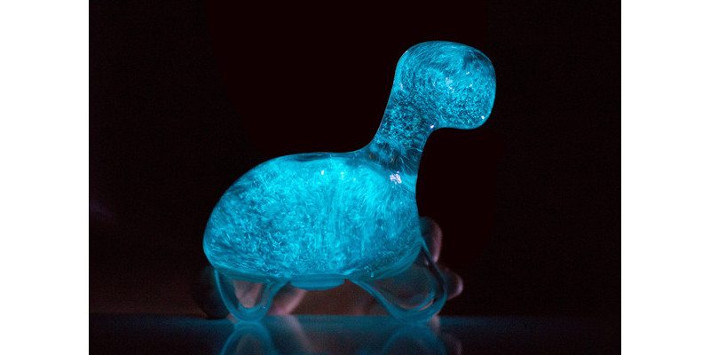Filled with the eukaryotic domain’s version of Sea Monkeys, DinoPet, a living bioluminescent pet, is filled with dinoflagellates. They are tiny creatures that, once settled and happy, will glow in the dark when slightly jostled.