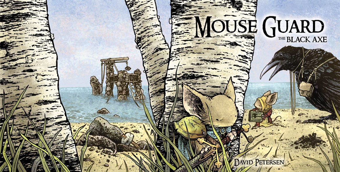 I had a copy of Mouse Guard: The Black Axe by David Petersen sitting on my review shelf (okay, one of my many review shelves) and forgot it was there. (See a pattern?) I think I got it before it was released, and decided to hold off until closer to the release date… which I then forgot. Yeah, that was a year and a half ago. Anyway, The Black Axe is the third volume of Mouse Guard (not counting the Legends of the Guard series, which has its own numbering). This time Petersen takes us back in time, focusing on the story of the Black Axe. The Black Axe is a legendary figure in the world of the mice, with stories throughout their history of this axe-wielding mouse. In the first two, an older mouse named Celanawe shows up as the Black Axe, but we learn that it is actually a title that has been passed down for generations. The Black Axe tells the story of how Celanawe came to wield the axe, as well as some of its history. Petersen’s artwork is, as always, beautiful and full of wonderful details. It’s a delight to read. I’m itching for more, but it looks like that may be it for the time being.