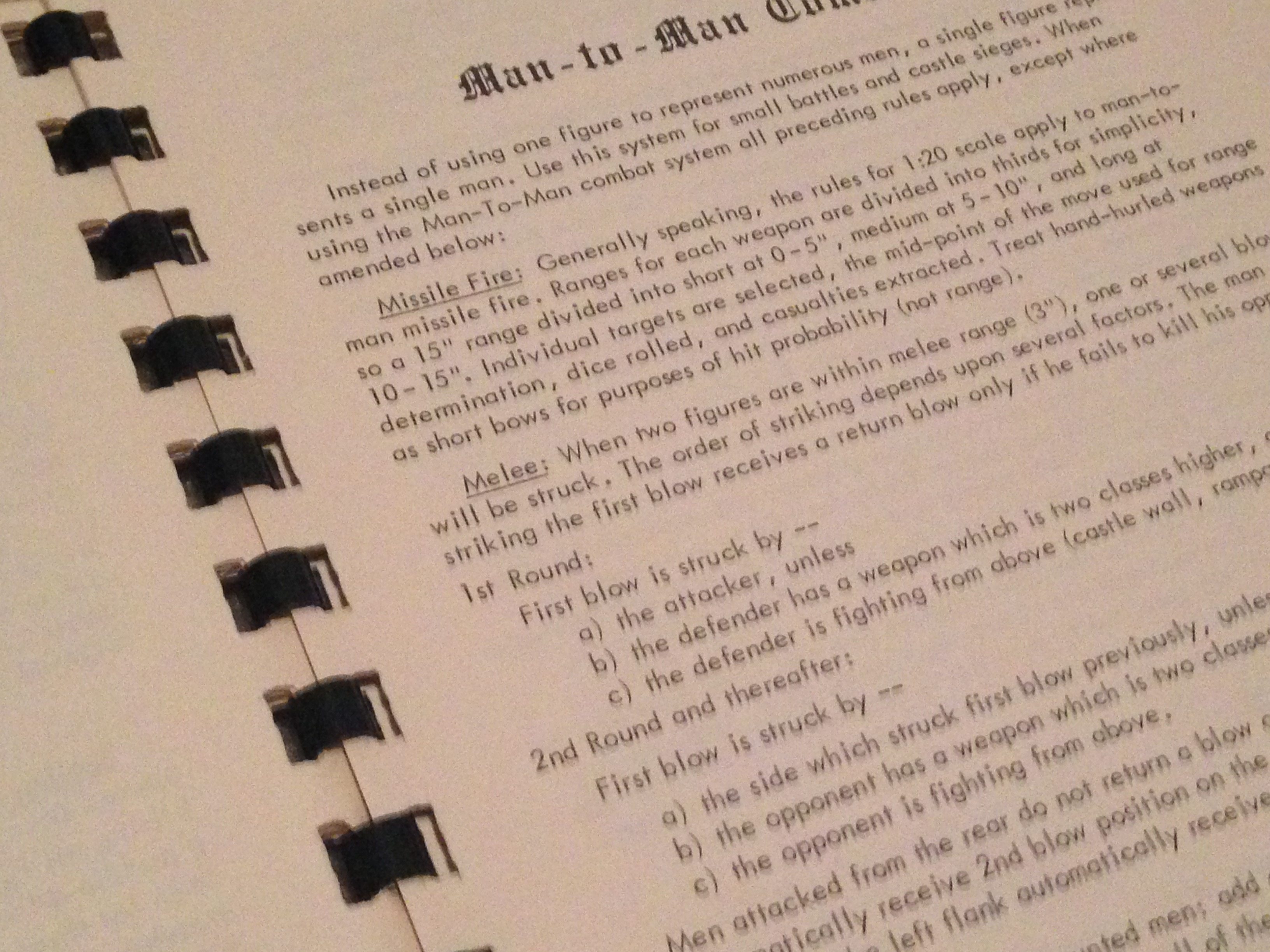 Note: I’m using my own 3rd edition copy of Chainmail as source for rule references. There were some differences between editions, but these were mostly related to additional monsters and spells for wizards and a change of “hobbits” to “halflings” to remove a copyright conflict with J.R.R. Tolkien’s estate.