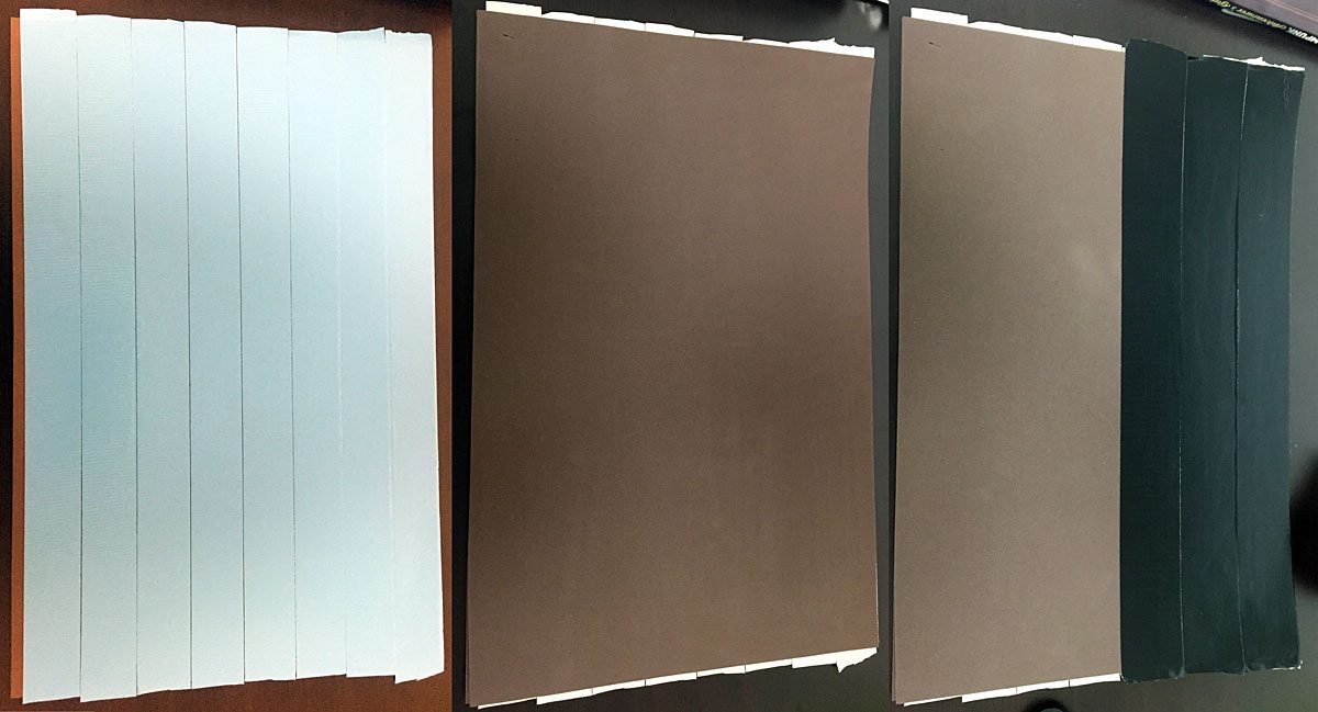 The next step was to make a bunch of fleather. Fleather is a fake leather made with craft foam and several kinds of duct tape that is explained in great detail in the The Steampunk Adventurer’s Guide. I started with the dark brown first.