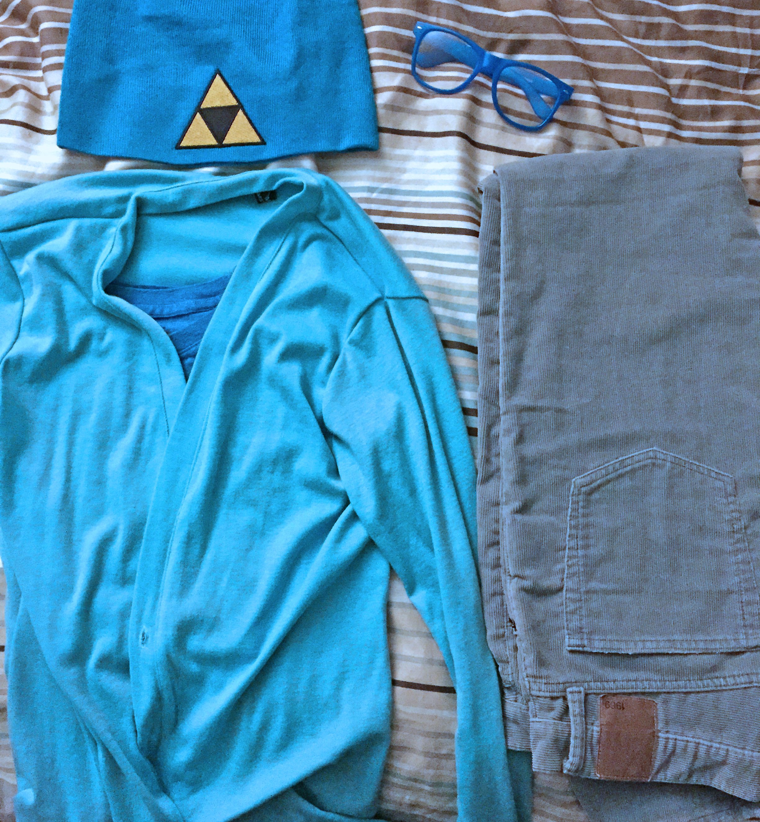 Then we set our minds to figuring out what cosplay I could do to compliment his Link. We kicked around several ideas before settling on the most obvious–Navi. I was not going to get into a blue body suit with wings or rig up some elaborate LED system so how does a six-foot tall guy pull off a Navi cosplay? Hipster Navi!