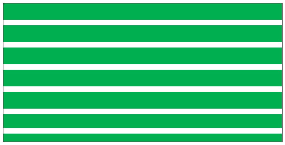 Assuming that the edge beds could actually be tended from outside the growing area, the two contenders for optimal planting beds start with complete coverage and have either horizontal or vertical internal paths, as shown below: