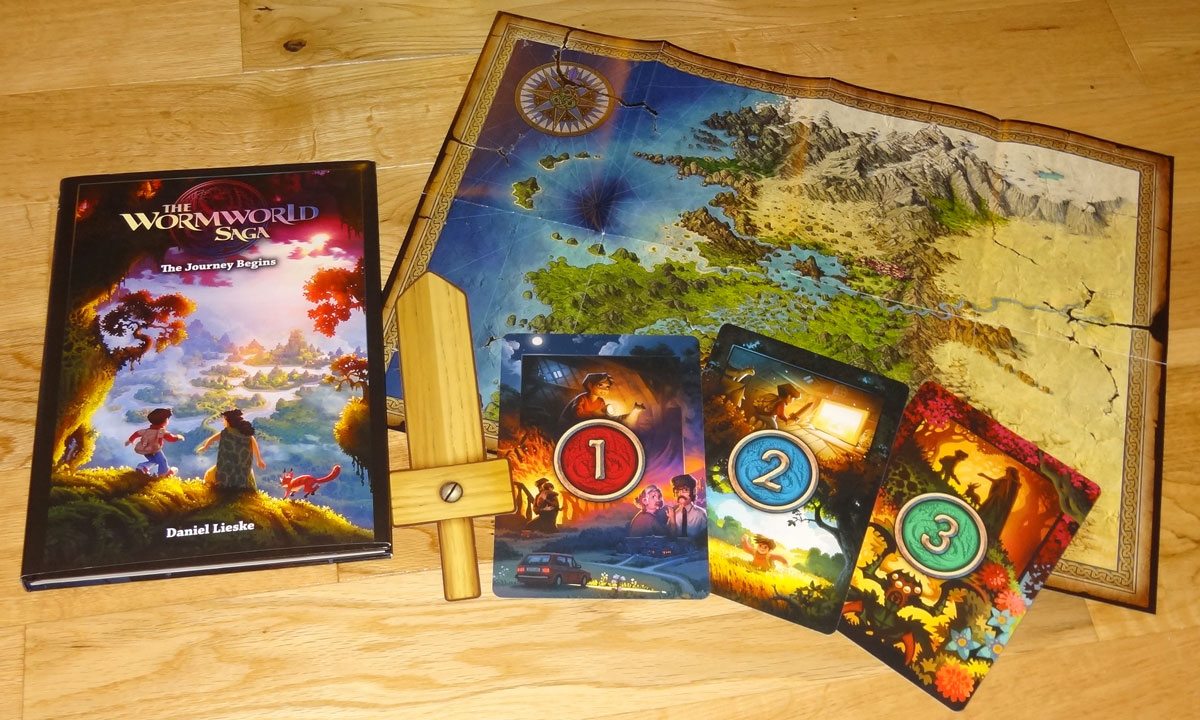 Lieske’s project to print a hardcover edition of The Wormworld Saga did really well, and he was able to add in lots of goodies, like the wooden sword bookmark, postcards for each chapter, and a map of Wormworld with all the backer names on the back. On top of that, the books are signed and stamped with the Wormworld seal. I kind of wish I’d backed for the deluxe edition, but I’ve been trying to rein in my Kickstarter spending. But it also means that for Book Two I’ll be backing the regular instead of the deluxe again.