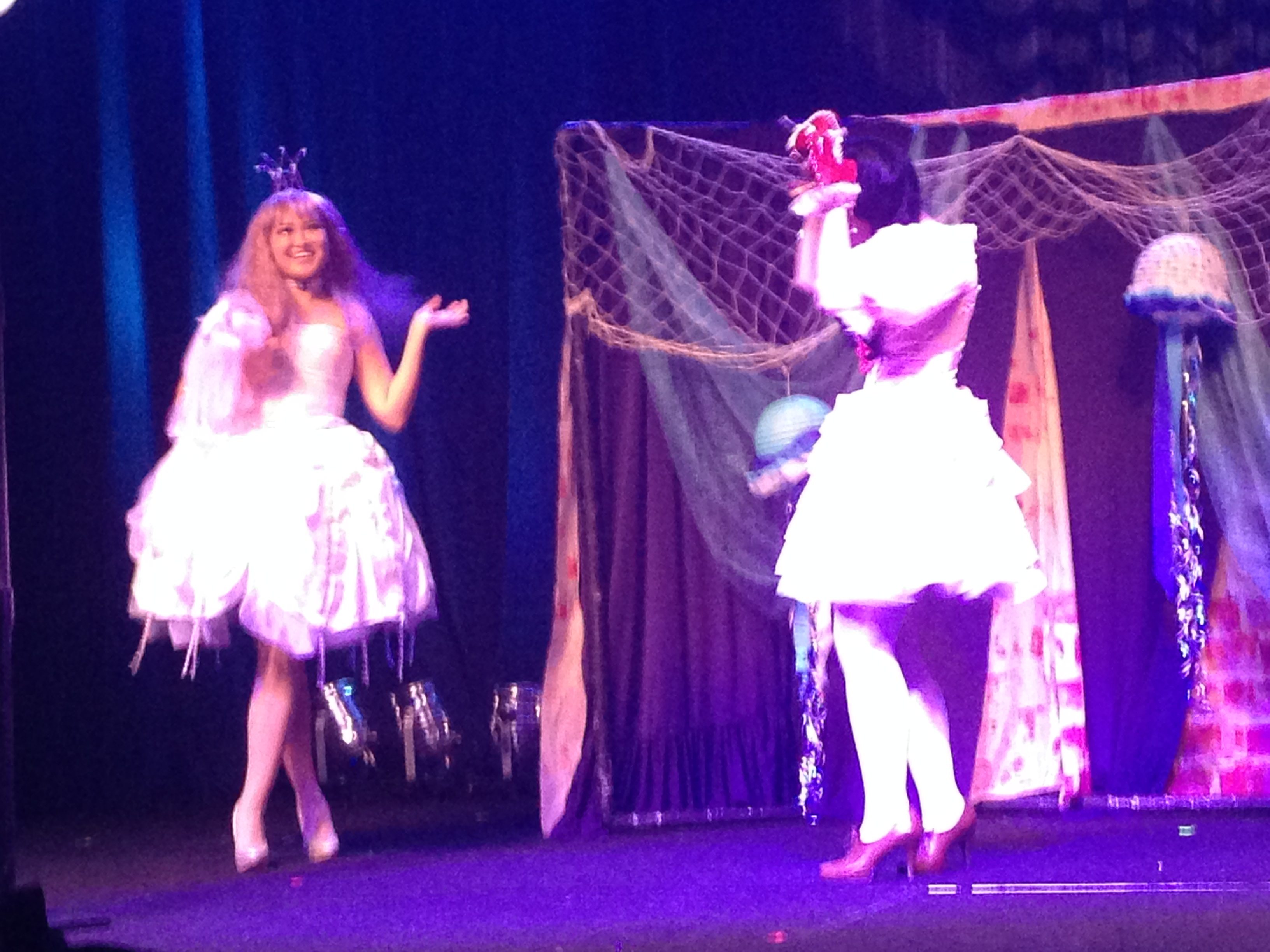 This was the tragedy of the evening. As the pair ascended from backstage, evidently part of a costume or prop broke. They spent a while trying to get it fixed enough to perform the skit, but after almost a minute of prep on stage were forced to tearfully admit that the skit could not be performed because of the broken element.