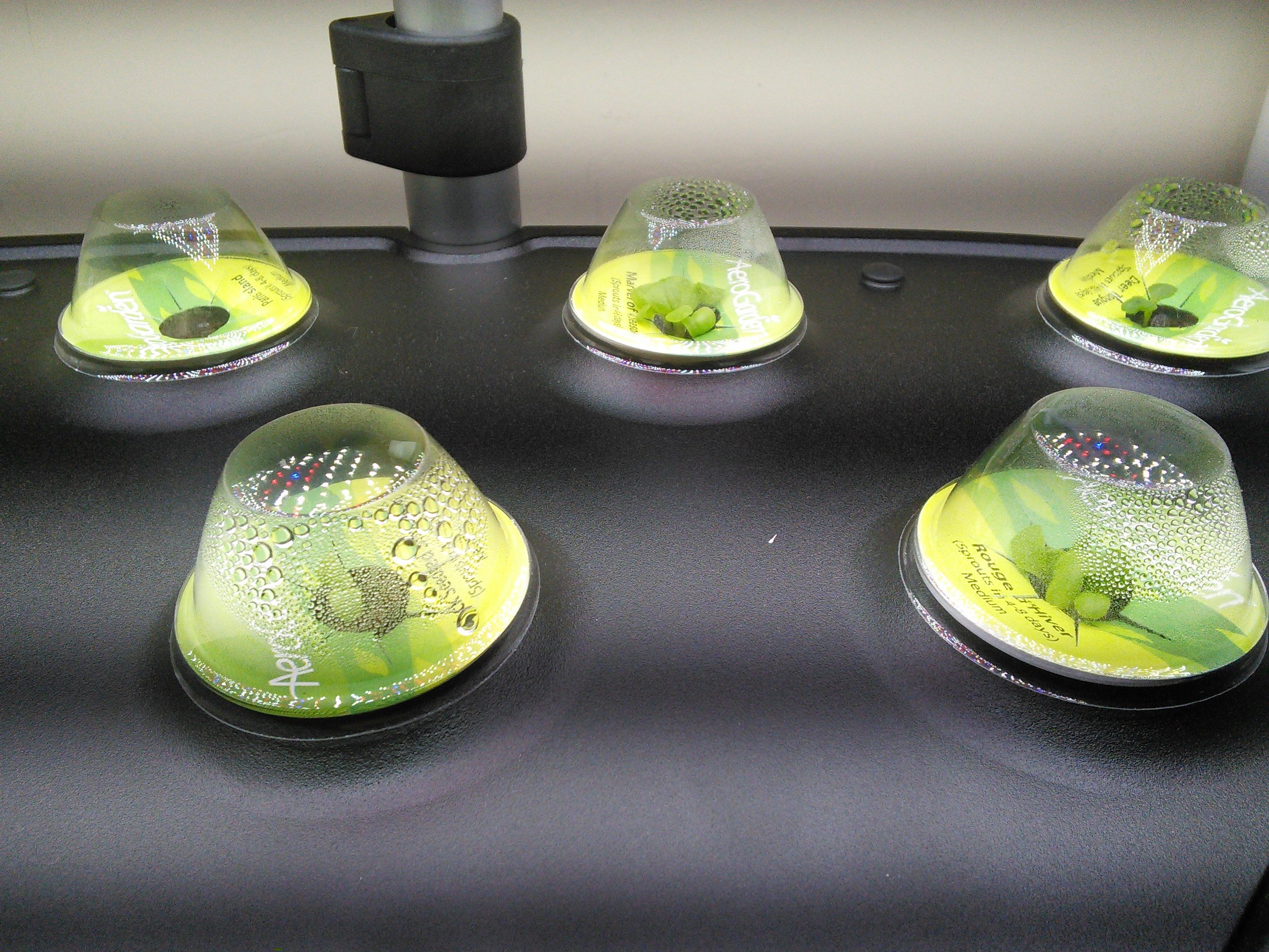 Miracle-Gro was gracious enough to send me their top model, the Aerogrow Ultra (which was initially exclusive to Costco). An impressive bit of kit, it comes with a slots for seven “seed pods“. These are pre-selected sets of seeds you use with the garden. You don’t have to specifically use their seeds – there are two different “grow anything” kits – but you do have to use the pods. I chose a lettuce medley for my review (and later purchased a set of mixed herbs).