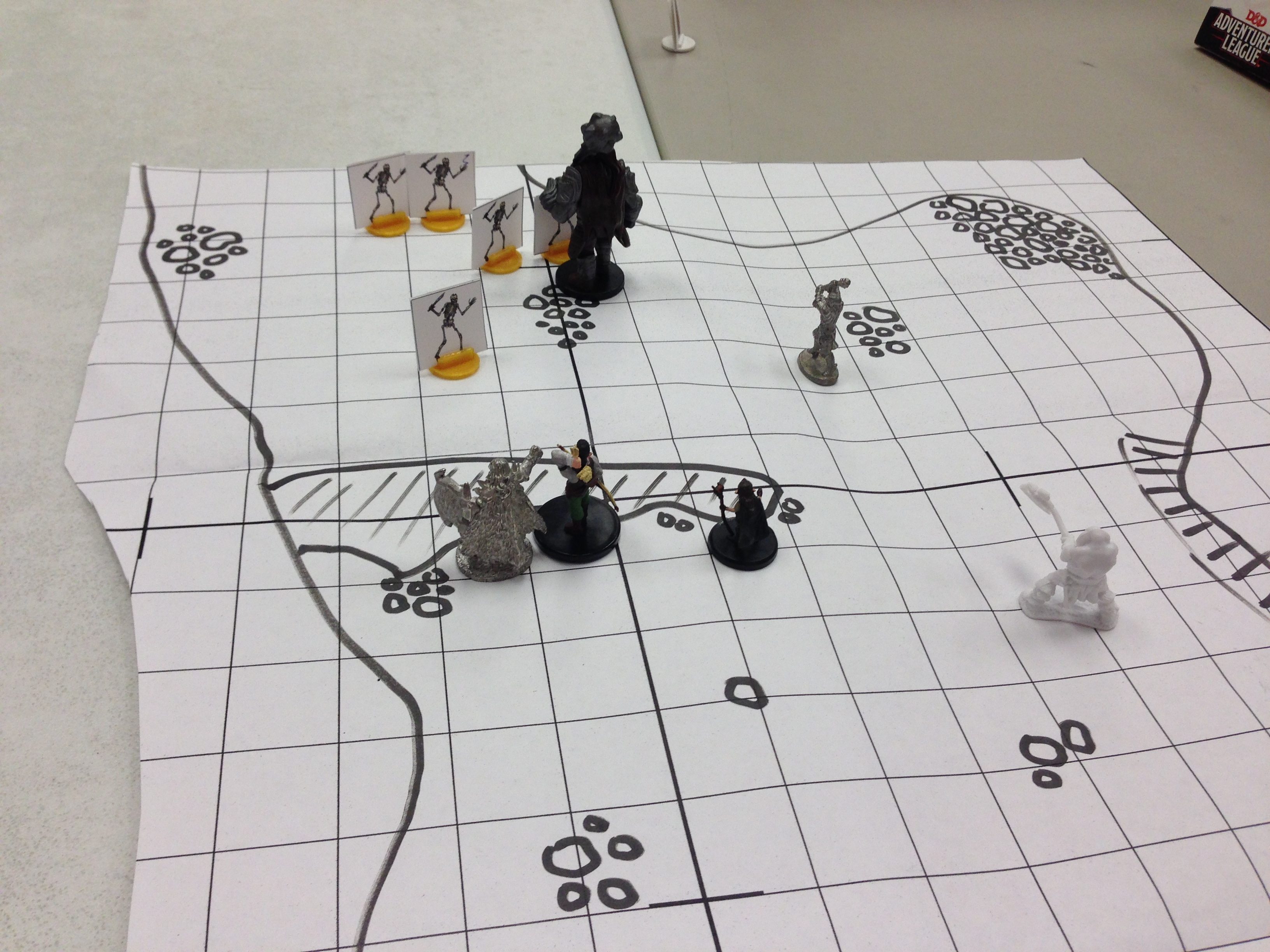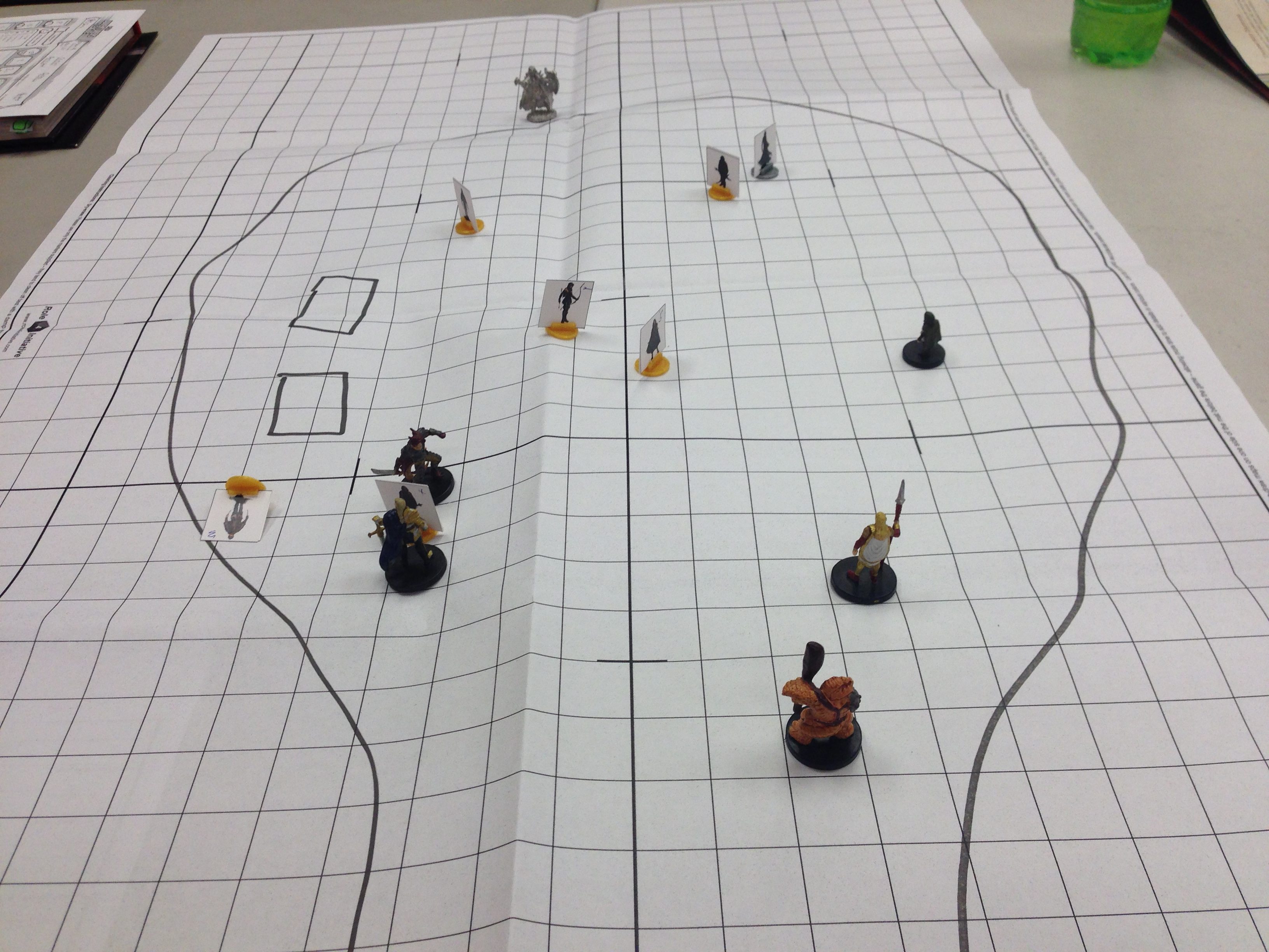 Again… they’re not going to win any awards, and they do require a little bit of time to prepare the images (front and back) and get them sized for the small boxes, but once I’ve created them, I save them so I can print them up again at any time. I’ve probably got 20 or 30 full sheets (8.5″ x 11″) with dozens and dozens of creatures and objects — I can easily copy one and then make duplicates if I need a full sheet of kobolds, for example. I’ve even used this for large creatures — the only change is to make the boxes 2″ x 2″ (or even larger) depending on the size of the creature and how the rules specify it takes up space.