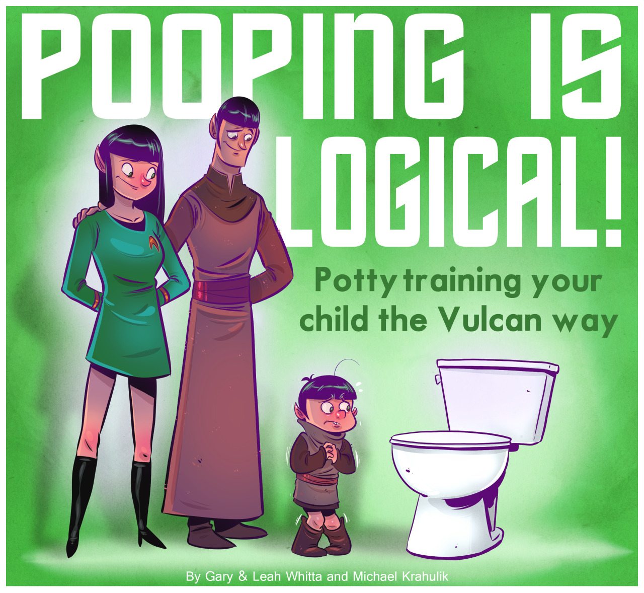 Pooping is Logical! tells the story of a young Vulcan child who, just like kids on Earth, is hesitant to make the leap out of diapers and onto the potty. Fortunately his parents, who are wise and loving, are on hand to help him through this transition and assure him that pooping on the potty is a perfectly natural, safe, and grown-up thing to do. In a society based on logic, what could be more logical than pooping?