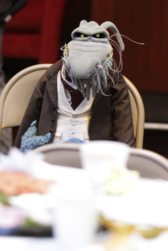 I like that The Muppets treats its audience like human adults, but I’m not as pleased that it treats its characters that way. Just because I remember when Muppet Babies was on TV doesn’t mean I need to think about where Muppet babies might actually come from, particularly when interspecies couples are involved. I don’t need, or want, to see Kermit go through a mid-life crisis, or hear Miss Piggy talk about the work she’s had done on her bosom (which immediately makes me wonder why there are only two, seeing as how she’s a pig, which is also something I don’t need to think about). I want to see Dr. Bunsen Honeydew getting people’s attention at the staff meeting by tasering Beaker (which he does, wonderfully). I want to see Fozzie be funny by, ironically, attempting to be funny and failing. I want to see Gonzo do ridiculous things that no sane whatever-Gonzo-is would even consider. I want to see Animal be his own unique self. In other words, I want to see the Muppets be the Muppets, and not see them parody shows like The Office, because parody of satire is at best weak comedy. I really, really do not want to see Josh Groban French-kiss Miss Piggy.