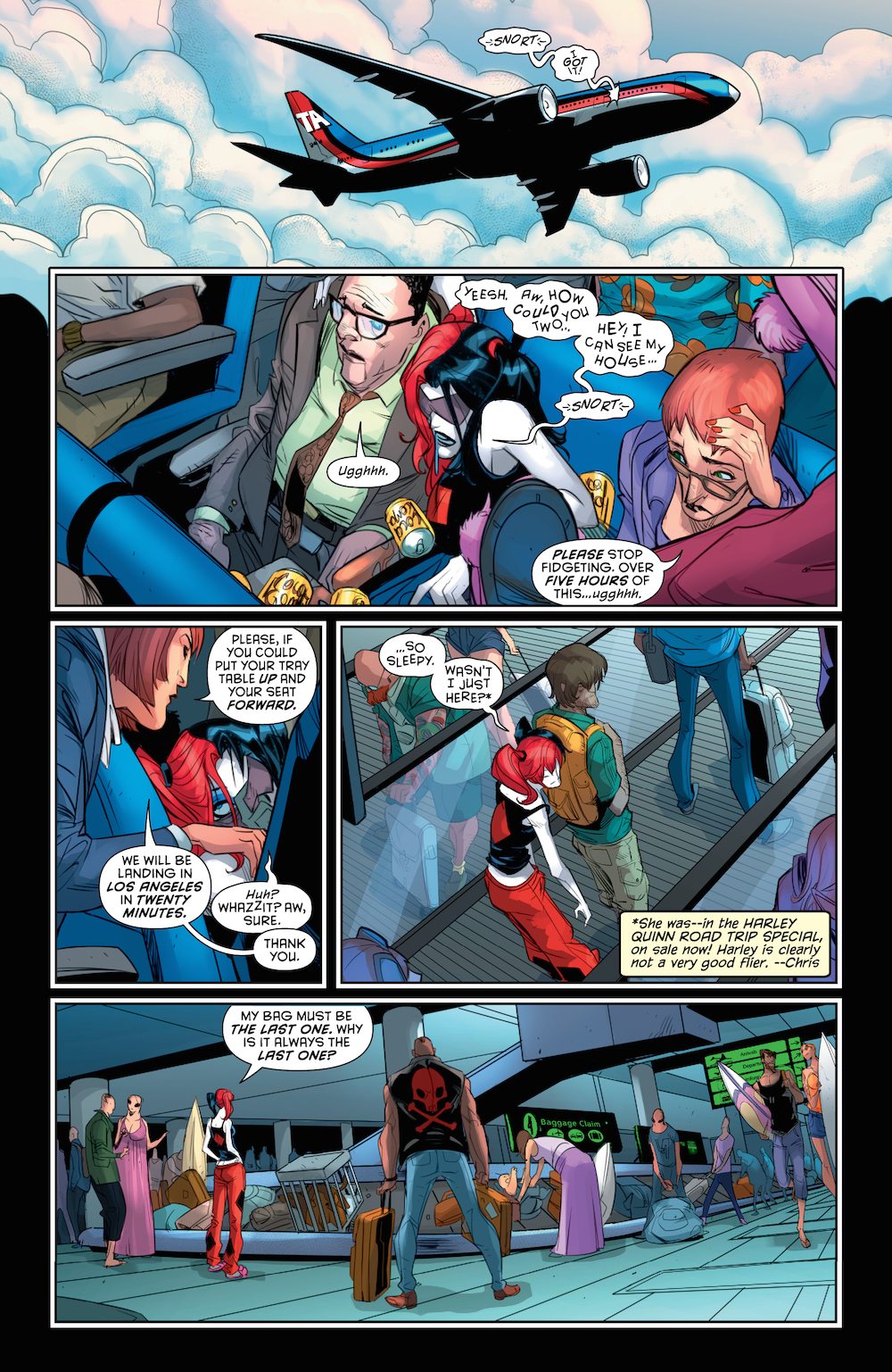 In this exclusive preview of Harley Quinn #20, Harley travels to Los Angeles in her own unique style. DC’s description of the issue: