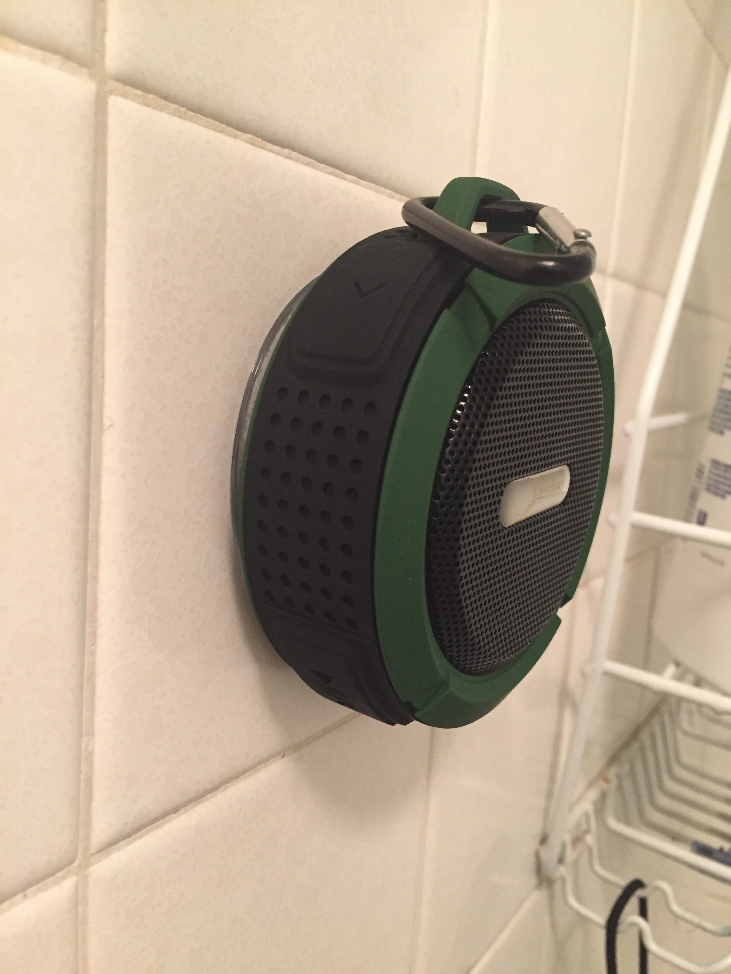 Elivebuy’s waterproof bluetooth speaker is the second such speaker I’ve tested but, unlike Inateck’s MercuryBox, this one is specifically designed for the shower. With a large suction cup on the back and a carabiner on the top, this small speaker is clearly designed to chill right on your shower wall.