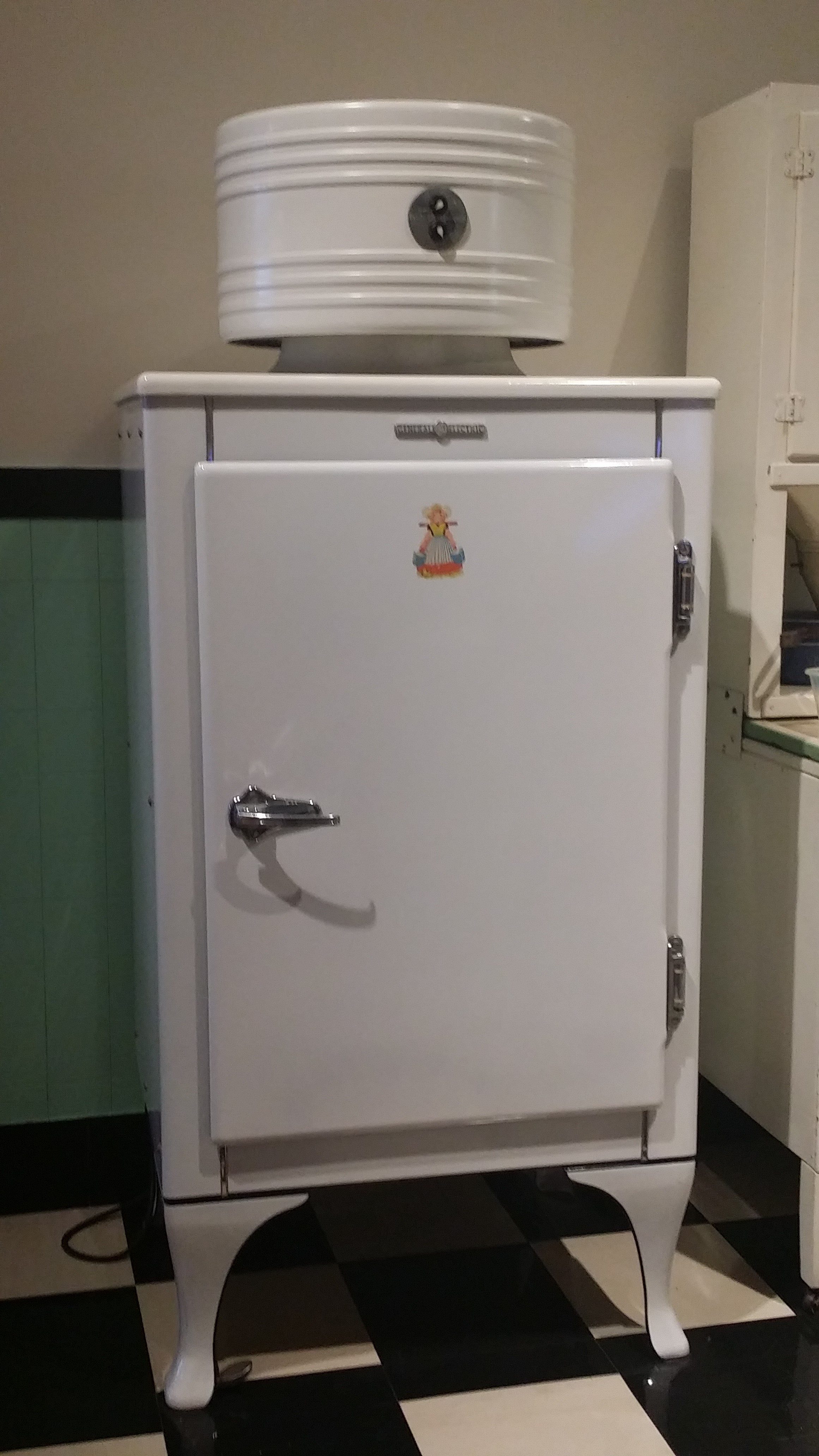 The gradual move of the refrigeration process into the home makes up the last part of the episode. Machines such as those by Perkins and Harrison helped increase the market for iceboxes, and in a video segment Hunkin documents the ‘last lift’ of an ice factory in the town of Lowestoft (the factory was actually demolished in 2010). Iceboxes gave rise to the first heavy-doored behemoths introduced by GE and other manufacturers in the early half of the twentieth century (pictured below) and the rise of industrial designer models during the ’50s.