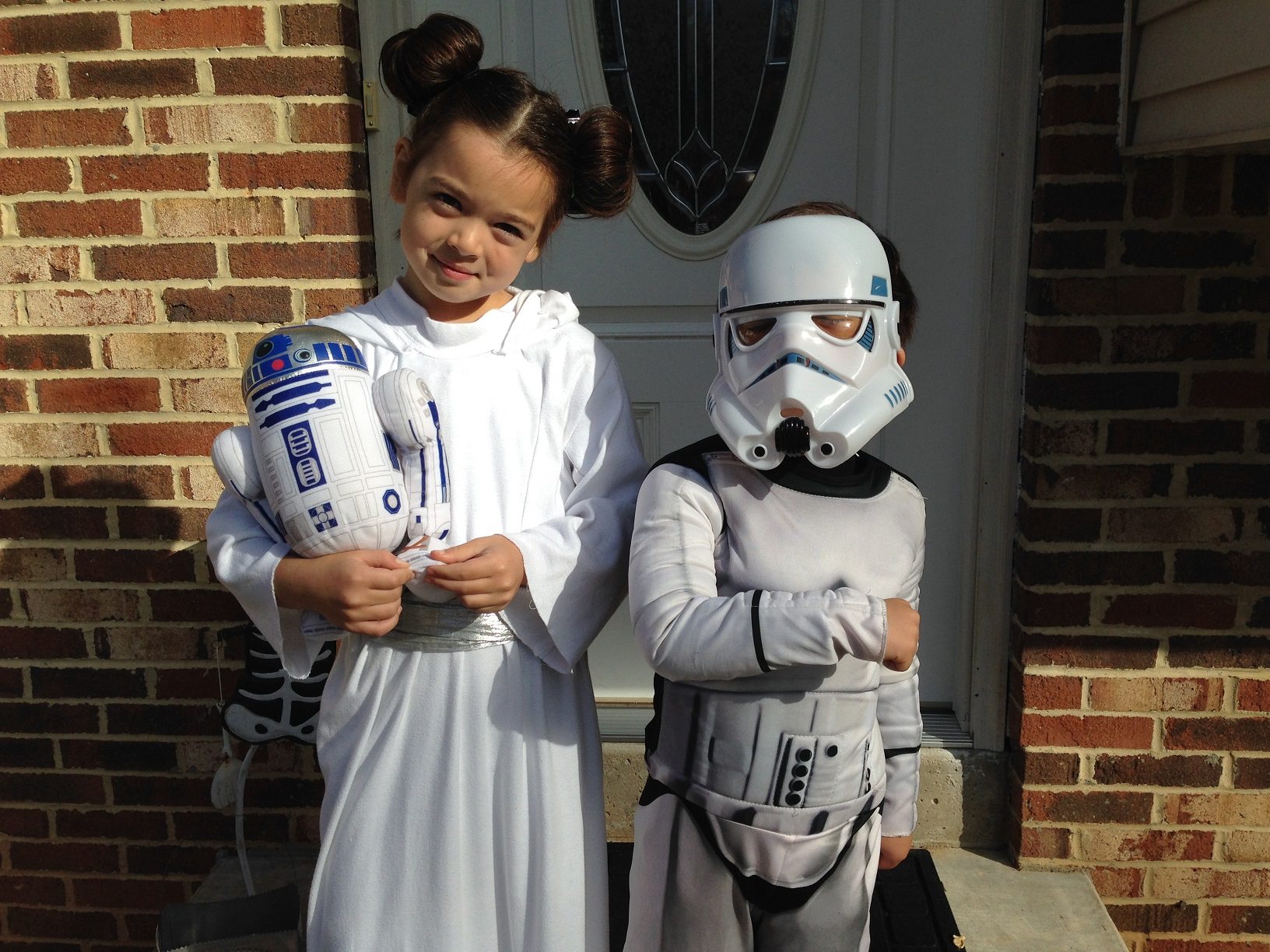 My daughters are huge fans of Star Wars Rebels. I created a Sabine Wren costume for my oldest, and a Hera Syndulla outfit for my youngest. Unfortunately, the green makeup and long lekku (head tails) were not feasible for their school Halloween party, so she opted to go as a cheerleader. Notice Sabine reaching for her non-existent guns, because you can’t have guns in school!