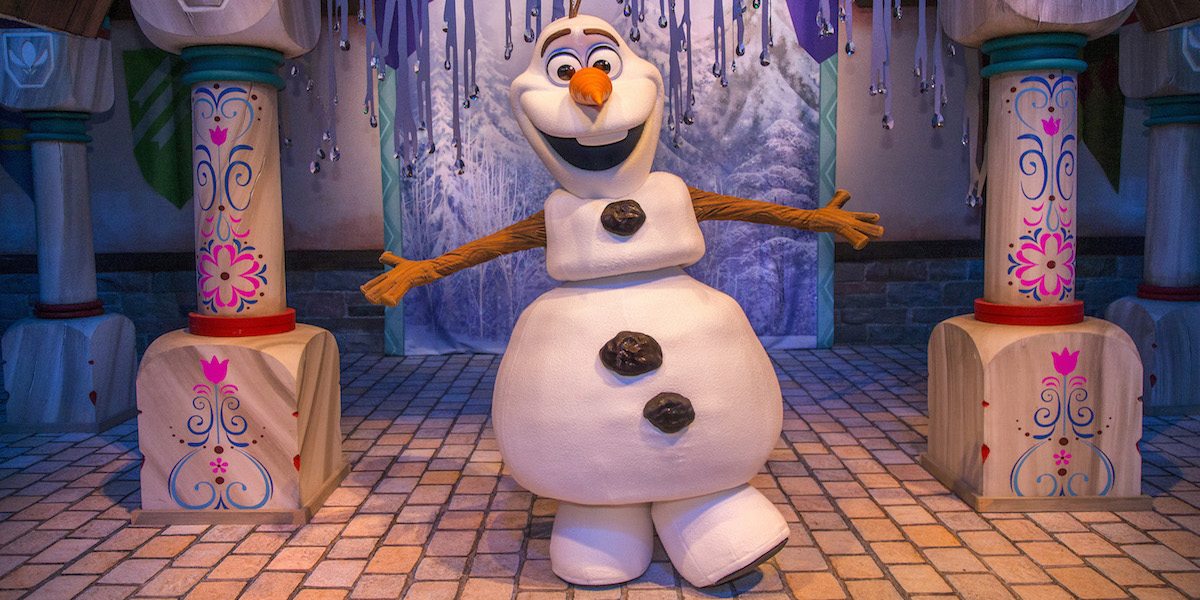 - “Olaf’s Snow Fest” features a 2,000-square-foot play area inside its Arendelle-inspired courtyard, plus a slide made of snow nearly 40-feet long. In all, there are close to 40 tons of real snow. It’s Frozen. Get it?