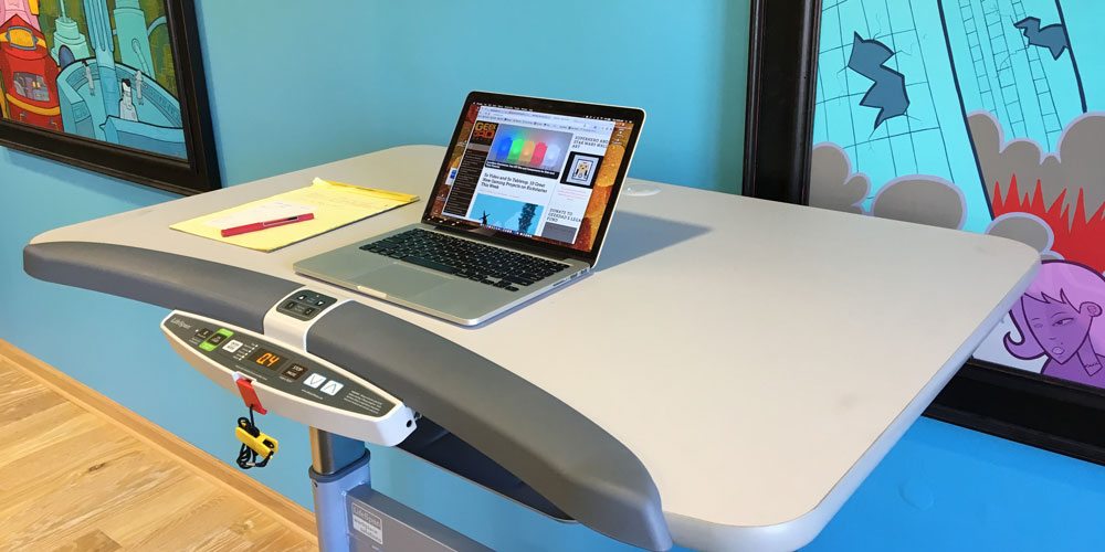 Sure enough, recommendations are for walking at 1-2 miles per hour. Think of the speed as the equivalent of slowly strolling through a really interesting con, looking at booths on either side and only taking about one step a second. It doesn’t feel like much and you aren’t going to lose much weight on a treadmill desk, but that’s not the point. A treadmill desk is for moving and heading off all those nasty things at the top of this page.
