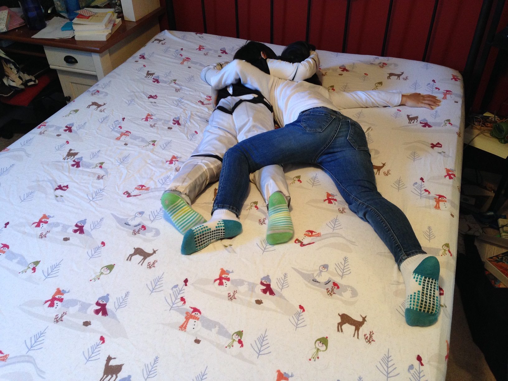 And about 30 seconds after that, the kids leaped up and started jumping. Their immediate reaction was one of disappointment. “This bed isn’t as bouncy as your old one.” Score one for the S-Bed! No more jumping kids. But they quickly discovered how comfy it is.