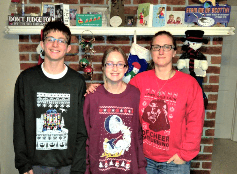 If you can’t tell by our sweaters, my kids are hardcore Star Wars fans like me. It isn’t a secret and my family knows it.