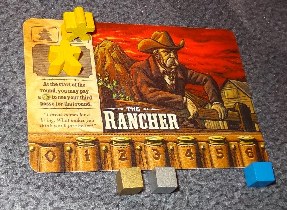 Then, the first player token is passed, everyone gets their Posse Members back, and begin the next round. (Note that activating your third Posse Member is always only for one round–you’ll need to activate it again if you want to use it again.)