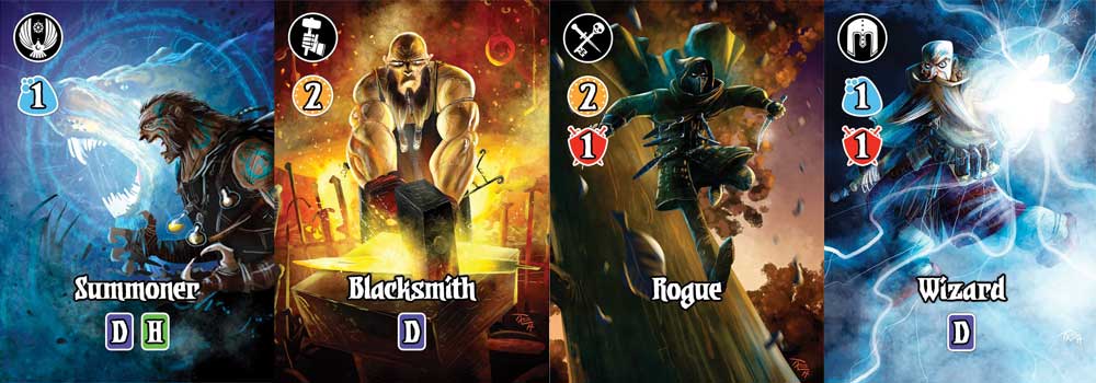 For this campaign, they do not have the high-pledge levels to get a custom portrait as one of the characters–I know there are some folks who are disappointed, but it does mean that the artwork is mostly complete already. (Full disclosure: since I’ve been a fan of the previous Valeria games, I was offered a slot as one of the Guild Masters: you can see me as “Ho-Kai the Collector” on the components graphic.)