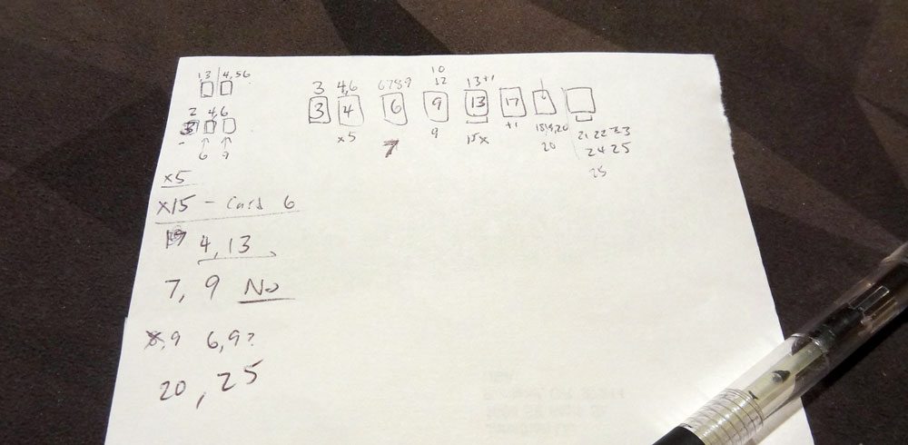 The Marshal makes guesses about what Hideouts the Fugitive has used, and can guess any number of Hideouts. However, the Fugitive only reveals cards if all of the guesses on a turn are correct. You don’t have to point at cards or identify which one you think is a particular number; if you guess “7” and the 7 is anywhere on the table, the Fugitive reveals it. If there are sprint cards under a revealed Hideout card, they are also revealed.