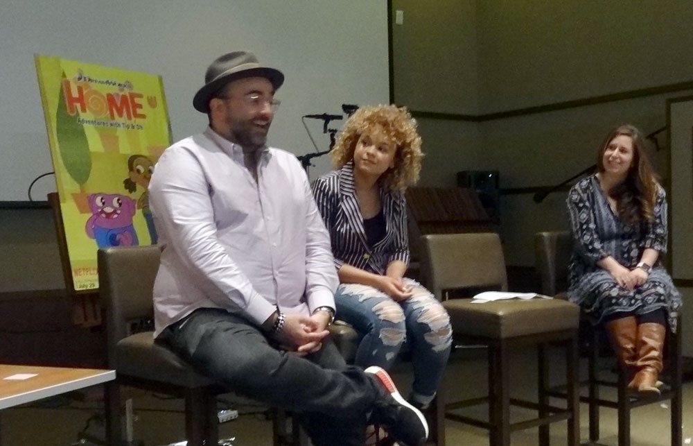 Over the course of the day, we got to meet several of the people involved in the show, including Ryan Crego, executive producer, and Todd Garfield, co-executive producer. Crego introduced the episode we watched and explained that for this series they really wanted to zoom in on this family: Tip, Oh, and Lucy (Tip’s mom). There are a lot of stories they could tell after the events of the movie, but they wanted this “Perfect Strangers with a space alien twist” feel to it.