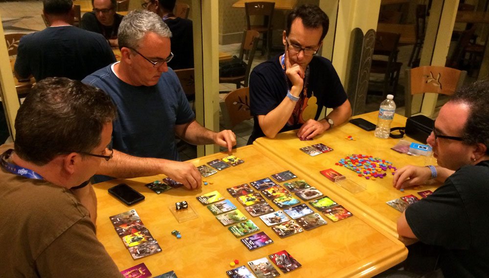 That’s impressive! I had a lot of publishers and designers that I wanted to meet with, since Gen Con is often the one time a year that I actually see them in person, which meant that I could spend up to half an hour or so just at one booth—and that generally doesn’t even include actually sitting down to play a game. It’s why I play very few games in the exhibit hall itself.