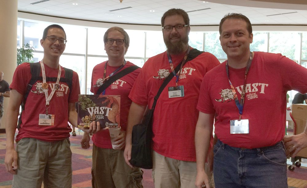 My real Gen Con experience began that afternoon when my fellow GeekDads arrived and the real gaming started. Jonathan Liu brought his copy of Vast, which I had backed on Kickstarter on his recommendation. While I played a lot more games over the weekend, I think Vast is the one I’m most excited to introduce to my family.
