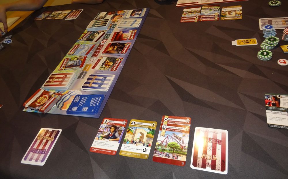 The Park phase is where you will get more cards and build up your amusement park. During each Park step, you may take a single action: Draw, Build, Demolish, or Pick Up Loose Change.