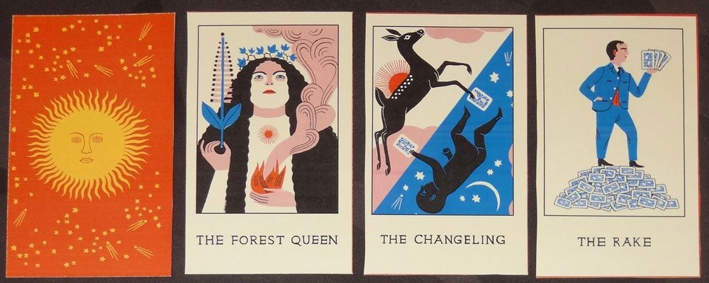 Normally I just jump right into components, then gameplay, and then my opinion of the game, but Illimat has an interesting story behind it that I think would make a good preamble, because it informs the way the game looks and how it plays. (The story is also reenacted in the Kickstarter video.) The Decemberists, in case you were unaware, are an indie band from Portland, Oregon. Lead singer Colin Meloy is also the author of the Wildwood trilogy, which was illustrated by his wife Carson Ellis, who also has done a lot of the band’s album artwork and promotional art. Oh, and the Decemberists love playing games and spend a lot of time gaming together when they’re on tour.