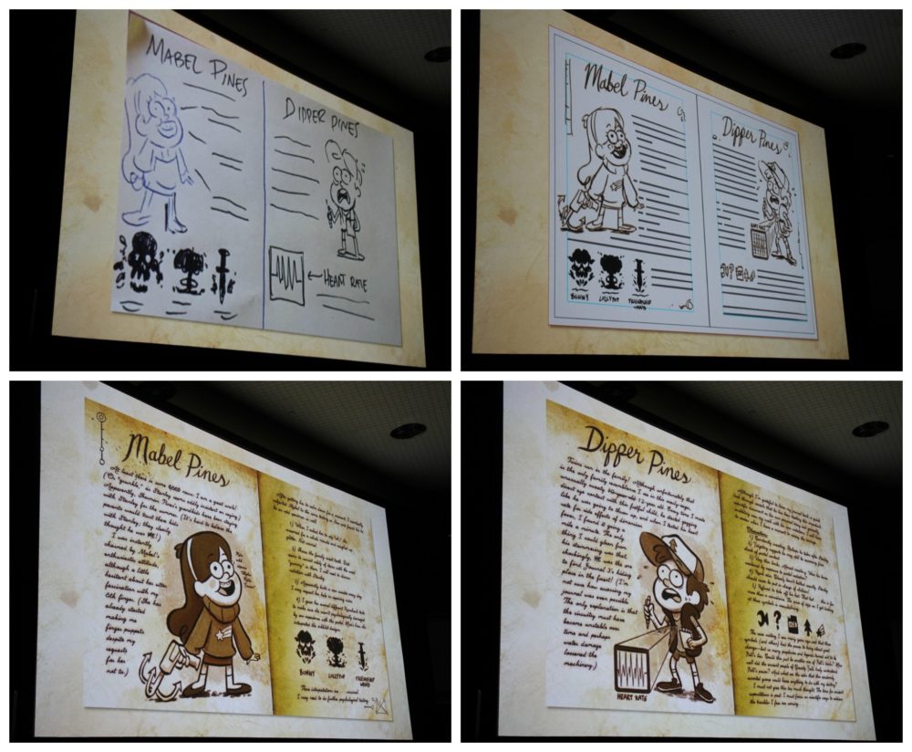 Joining Alex on stage were Rob Renzetti and Stephanie Ramirez to talk about the show, the book, and bridging the gap between the two. Many of the pages that comprise Journal 3 appeared in the show, but the team still needed connective tissue in order to make the whole thing make sense and work together. Therefore, they started backwards with the pages that already existed (in some form) and then filled in the gaps.