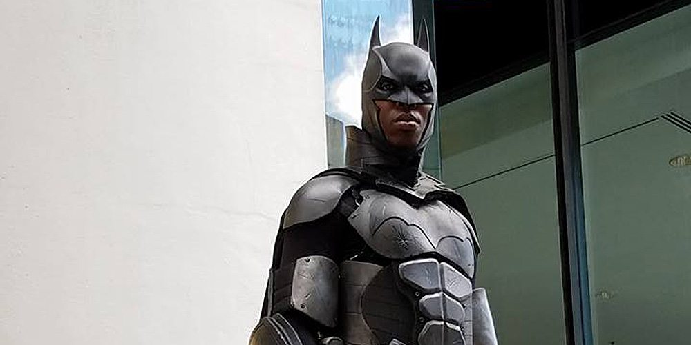 Think about this. These kids are growing up in a country where you can so easily feel like ‘less than’ because your skin is darker. Police brutality and racism are being made ever so visible by today’s multimedia outlets and these kids aren’t blind, they take that in. For kids like this little boy, the idea that you can one day be a superhero, no matter what your skin color is, opens up a whole new world for them. This is why I cosplay. This is why I’m The Batman. #RepresentationMatters