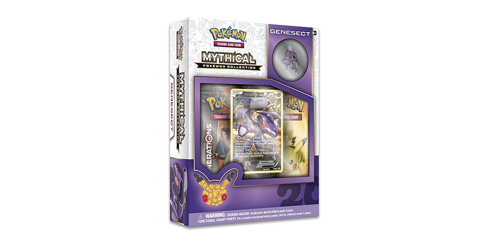 The Pokémon Company International has spent all of 2016 celebrating #Pokemon20, the landmark 20th anniversary of the franchise. Part of the festivities has been a series of specially featured Pocket Monsters; each month sees a new featured Mythical Pokémon, complete with a video game distribution and special related merchandise. Chief among these are the Mythical Pokémon Collections, affordable TCG boxed sets that include never-before-seen foil promo cards of the Mythical of the month, 2 Generations TCG booster packs, a special code card for the Pokémon Trading Card Game Online, and a collector’s pin. November, for example, is all about robot-bug Genesect, while October belonged to Keldeo. [Review materials provided by The Pokémon Company International.]