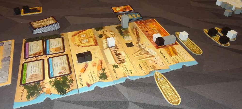 The mix of immediate and end-game scoring means that it’s not always immediately obvious who’s really ahead without doing a lot of math. You can go for short-term points in the pyramids and the temple, or play the long game with the obelisk and burial chamber.