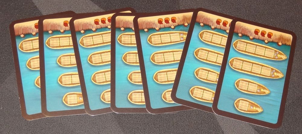 The other thing to note is that there are four ships each round but there are five site boards. So there’s always one board that will not get visited each round. If you thought you could hedge your bets by placing one stone on each boat, your opponents may thwart you anyway by sailing to every place but the one you really wanted.