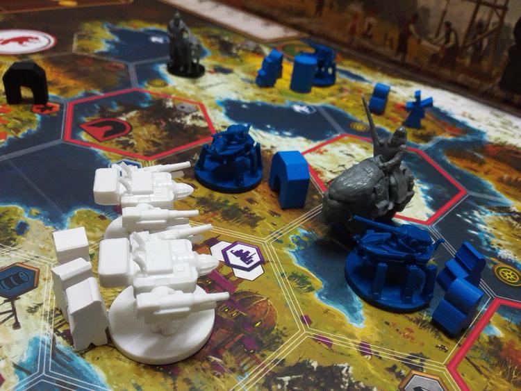 In Scythe, players compete to gain dominance over the war-torn provinces of central Europe. From the relentless Rusviets to the water-borne Nordics, take control of one of five unique factions, each with their own upgrades and special powers.