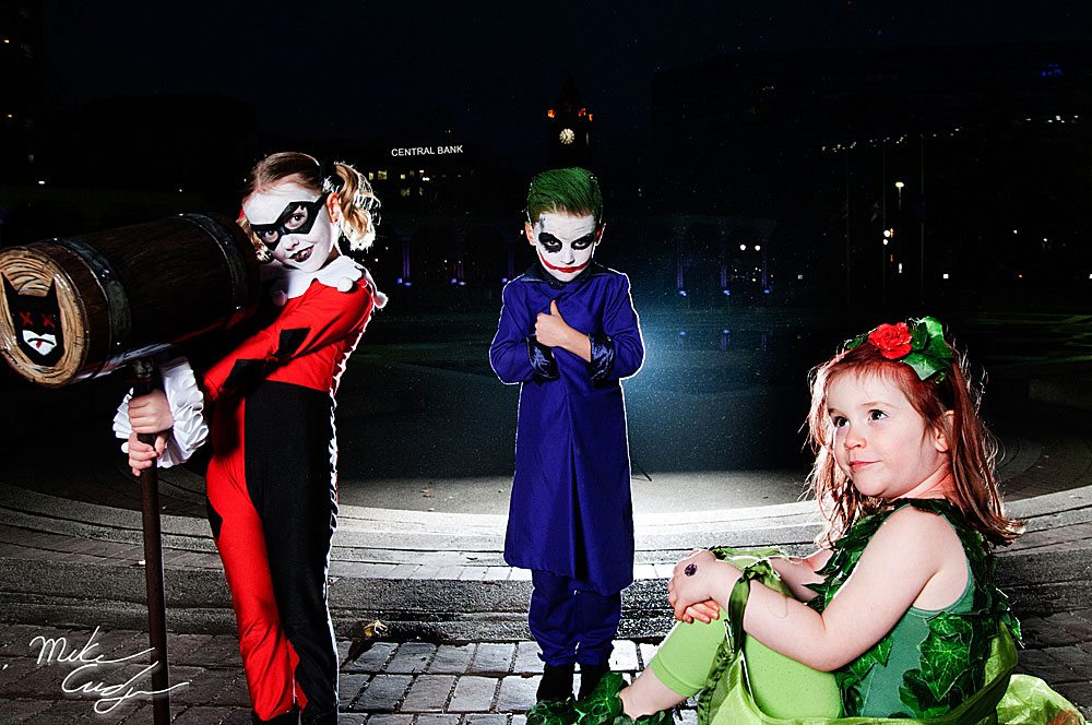 Harley Quinn, Joker, Batgirl, and Poison Ivy. Photo by MonikA Photography. Carrick: Show them comic books, TV shows, movies, and any medium that they maybe interested in. Get them to pick their favorite character, and their interest in helping with the costume should come naturally.