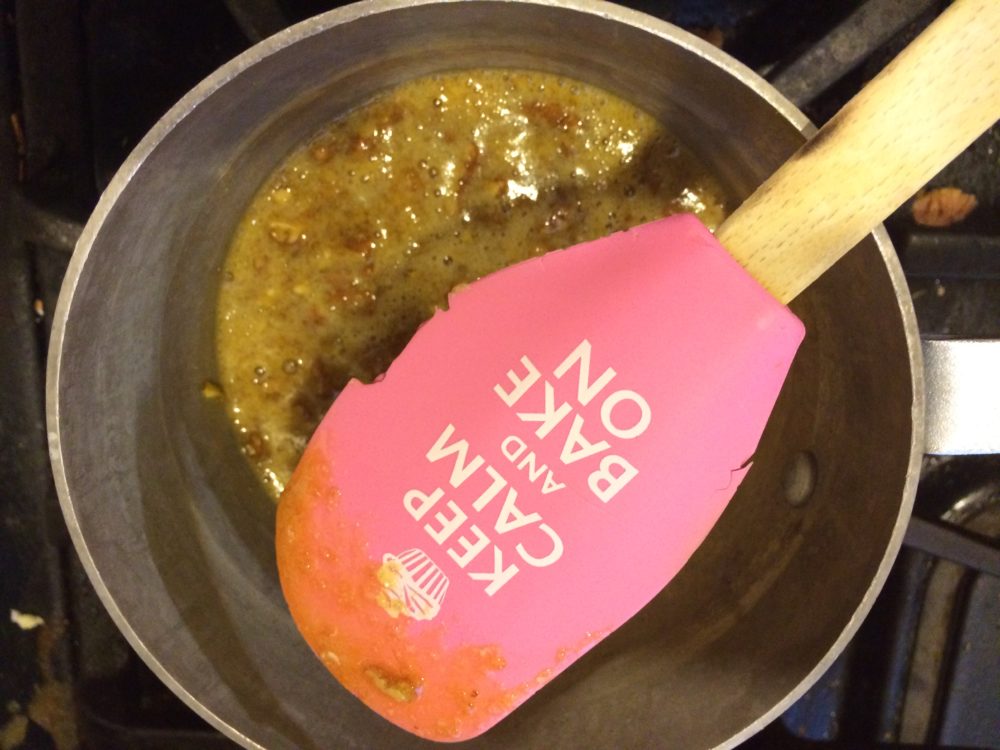 As you can see, the pot I used to mix/cook the filling isn’t anything special. It’s also about a million years old. The rubber on the handle actually conducts heat instead of buffering it at this point and I’m forced to admit I’ve lighted more than one tea towel on fire using them to prevent injury. I do recommend silicon spatulas for sticky stuff because it’s easier to clean hardened sugar and caramel off of plastic than it is off of wood but silicon certainly isn’t necessary.