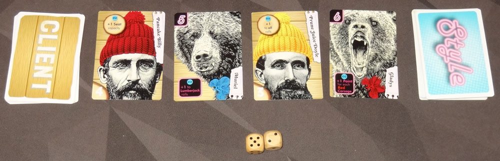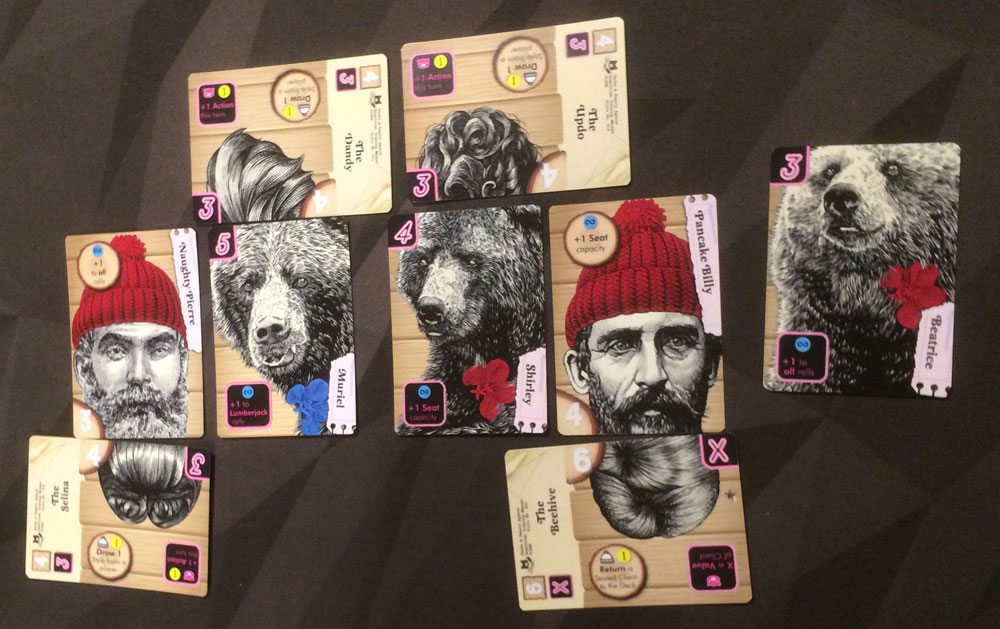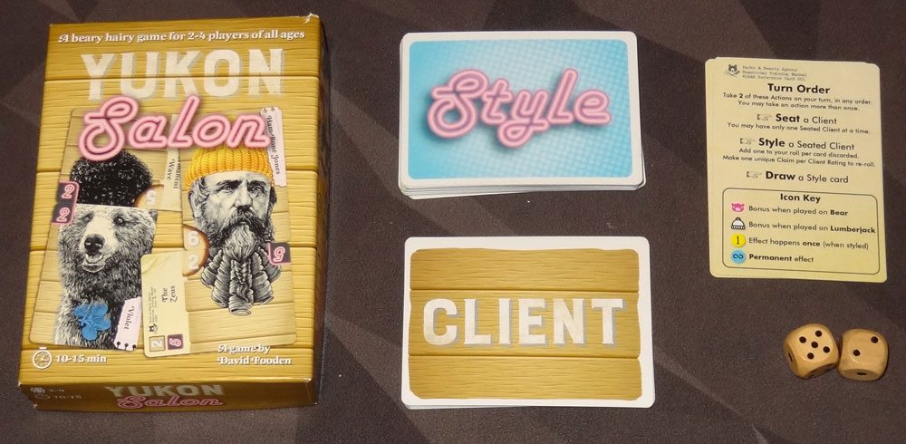 I first played Yukon Salon in 2015, when Dave Fooden brought an early prototype with him to XOXO, so I know he’s been working on it and playtesting it for quite some time, and the gameplay has been refined since then. The basic premise, though, remains just as silly—and it’s hard not to smile when you see your clients all styled up, whether they’re lumberjacks or bears.