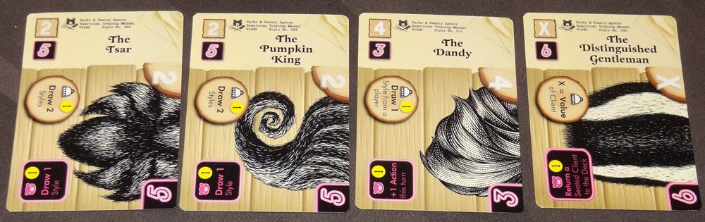 In addition, each client card has a point value and special effect. Each style card has two values and two effects, depending on whether the card is played as a beard or a hairdo.