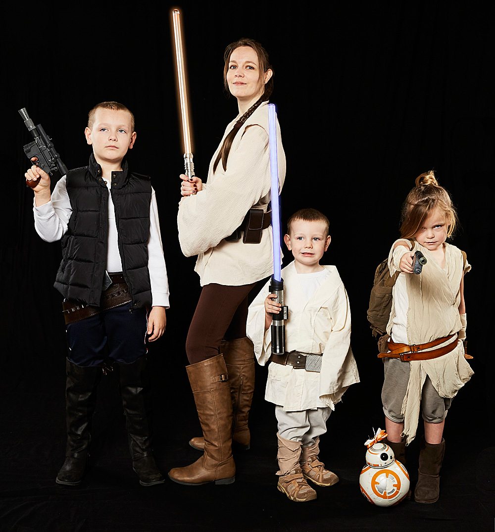 - Myself and my three kiddos–Peter (8), Sarah (6), and Luke (4)–all cosplay. My husband doesn’t, but he’s supportive of it as long as we’re having fun! It also helps that he’s willing to stay home with the kids for the few conventions I go to without them. 😉