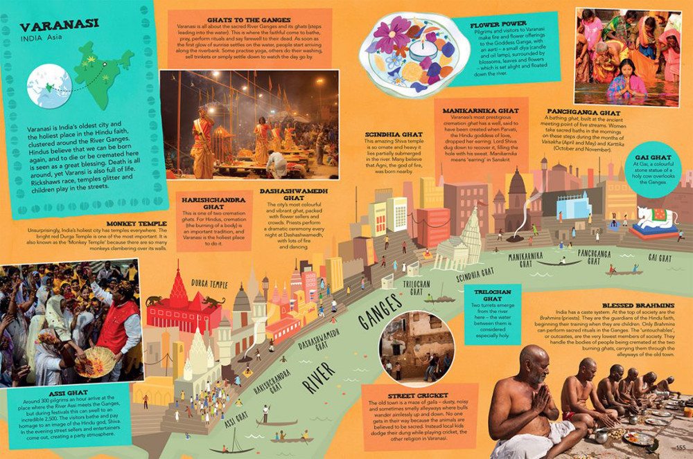 Though readers only get a brief overview trip to each city, the book does a good job giving a taste of the unique aspects of each. Certain cities might pique the interest of your kids, and this book can be a jumping off point for further study (and trip planning!). And, with 86 cities contained in the large-format book, there is something for every taste. Every continent but Antarctica is represented.
