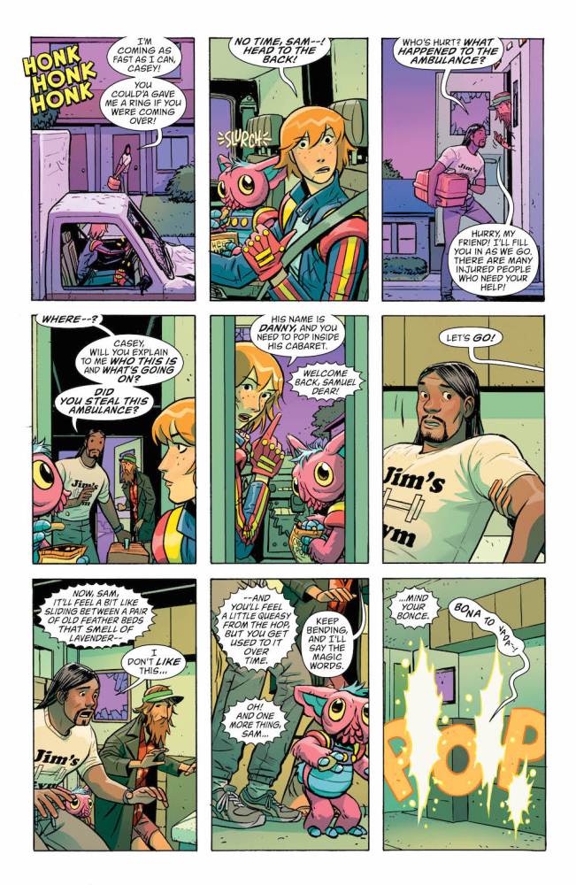 Ray: This continues to be a gloriously surreal comic, with some of the best visuals of any book on the stands. It starts with Casey Brinke’s friend Sam being essentially drafted into the bizarre team that’s being formed by Casey and Danny, while he reacts with utter confusion to everything that’s going on. That’s kind of my reaction as well, honestly, especially when it gets to the segment where Larry Trainor is transformed into the Negative Man. I get that the classic bandage look is iconic, but it did seem like the narration for why it exists was a bit forced. It only gets more confusing from there. Dannyland is in chaos, an iconic Doom Patrol member is apparently dead, and Casey’s cat is transformed into a were-cat by an astronaut. This is all in the first third of the comic, mind you.